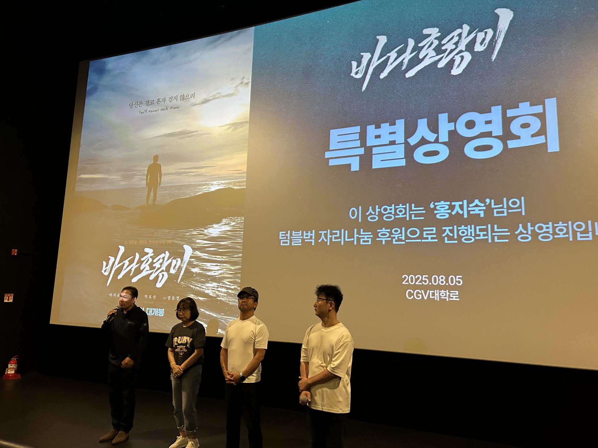 지난 8월 5일, CGV대학로에서 열린 〈바다호랑이〉 특별 상영회와 GV는 그 고통을 나누고 위로하는 시간이기도 했다. 영화가 끝난 후, 무대에 오른 황병주 세월호 416민간잠수사회 부회장은 “거의 전원이 가장 생생할 때 인터뷰에 응했고, 그 내용이 나경수 씨를 통해 현실감 있게 잘 표현됐다”며 “잊지 않고 기억해주셔서 고맙다”고 짧은 인사말을 전했다.