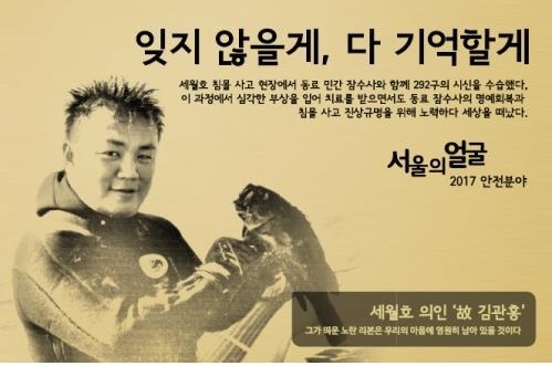 ▲ 서울시 '명예의 전당'에 걸린 김관홍 잠수사의 부조상 © 서울시