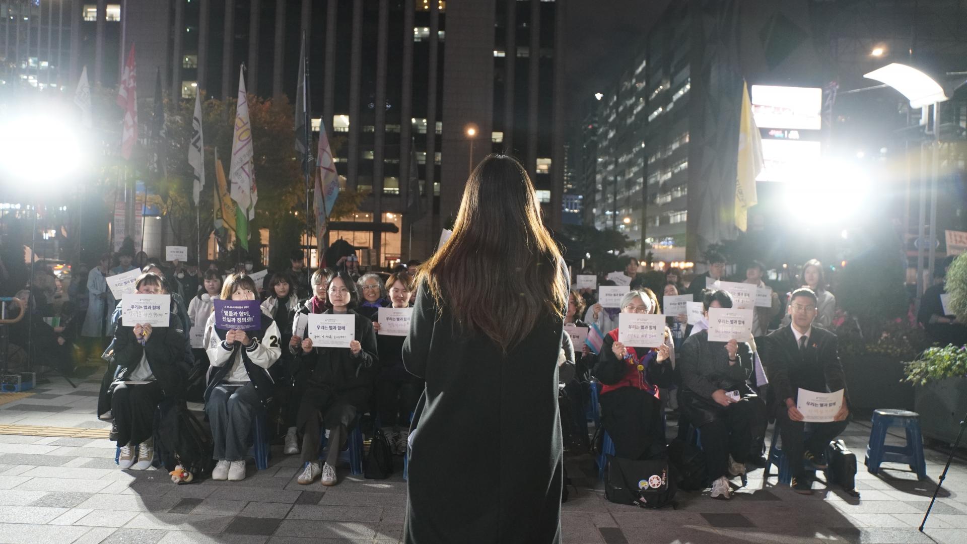 10.29 이태원참사 유가족협의회 희생자 유연주 님의 언니 유정 님은 이태원 참사 이후 한명의 청년, 학생이 아닌 희생자의 가족, 언니로 살고 있다고 말하며 발언을 열었습니다. 광장을 통해 이 사회가 서로 안부를 묻고 연대하려는 사람들이 많지만 참사 앞에서는 여전히 가혹하고 잔인하다는 이야기를 나누어 주었습니다. 이태원 참사 이후 윤석열 정부는 서울 광장에 영정과 위패도 없이 분향소를 차렸으나 이후 가족들이 영정과 위패가 갖추어진 분향소를 서울 광장에 세웠을 때 변상금까지 부과하며 압박했고, 그 변상금은 여전히 가족들의 몫으로 값아가고 있음을 말하며 이 사회가 참사를 경험하게 만들고 그 경험을 가진 청년들에게 다시 참사를 마주하게 하는 것을 어렵게, 가혹하게 만들어 가고 있음을 말씀해 주었습니다.
