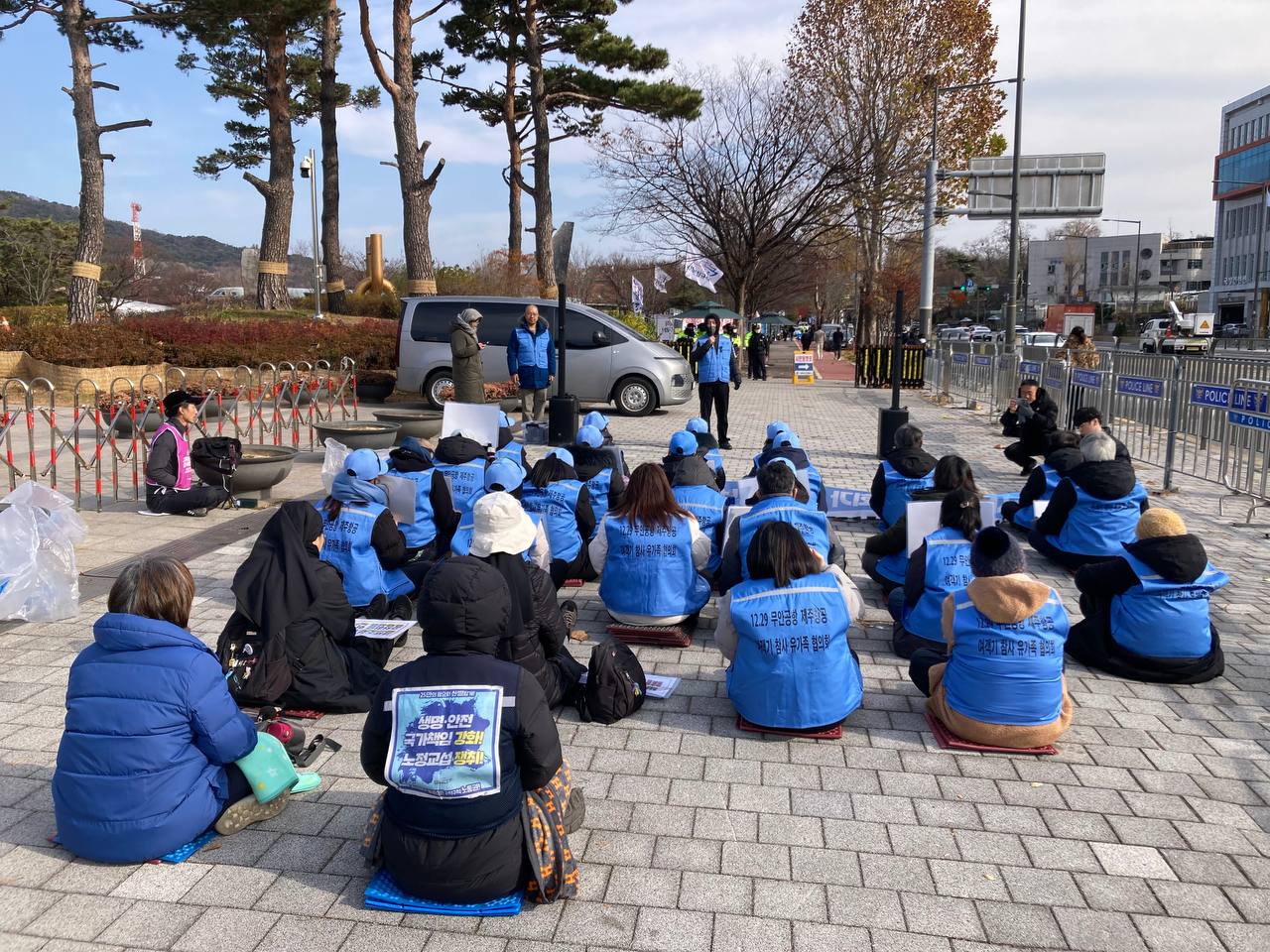 농성 2일차인 12월 2일, 오전 8시 출근길 선전전을 진행하고 참사 당일을 상징하는 12시 29분에 진실규명 촉구집회를 진행하였습니다.