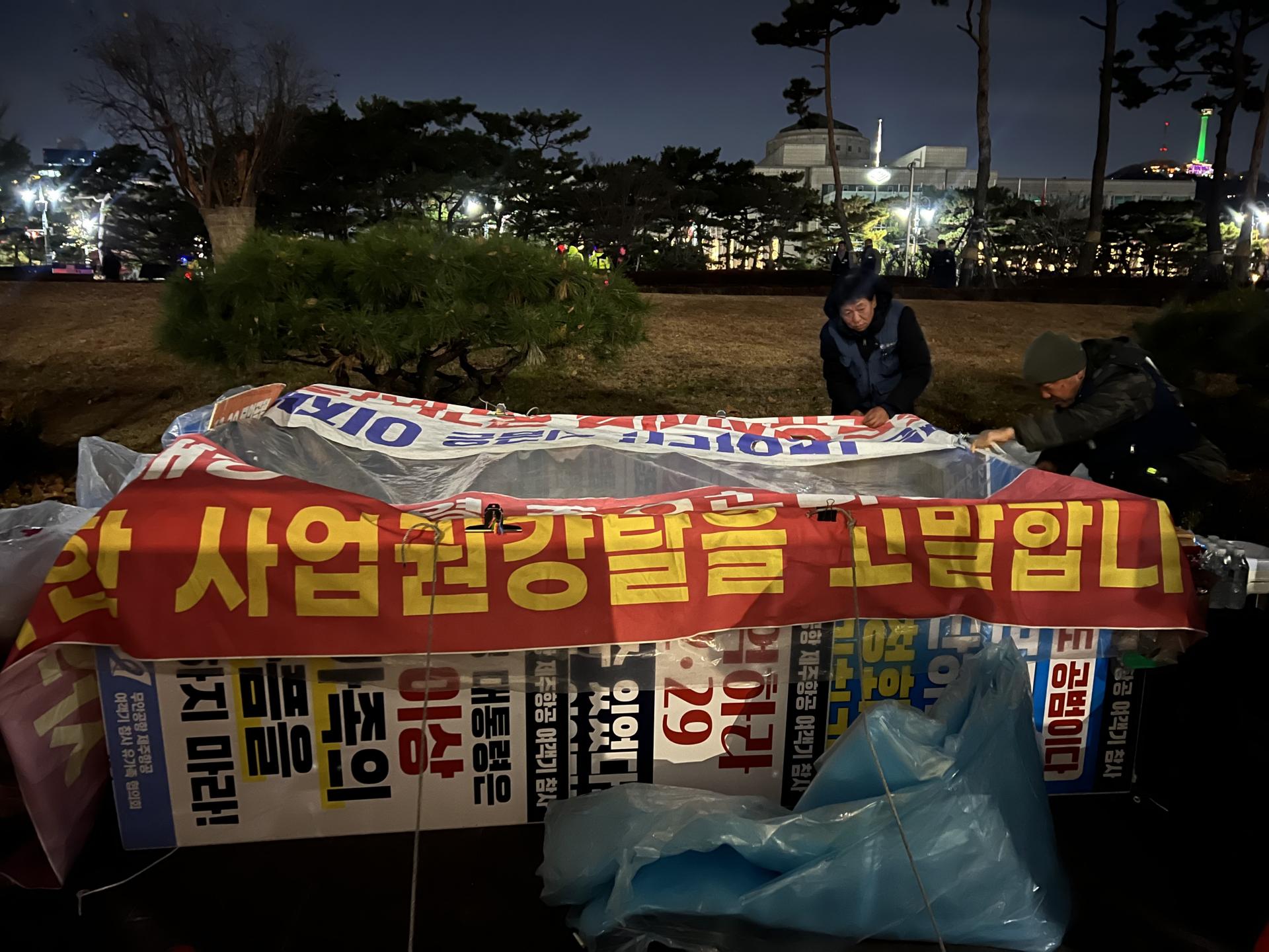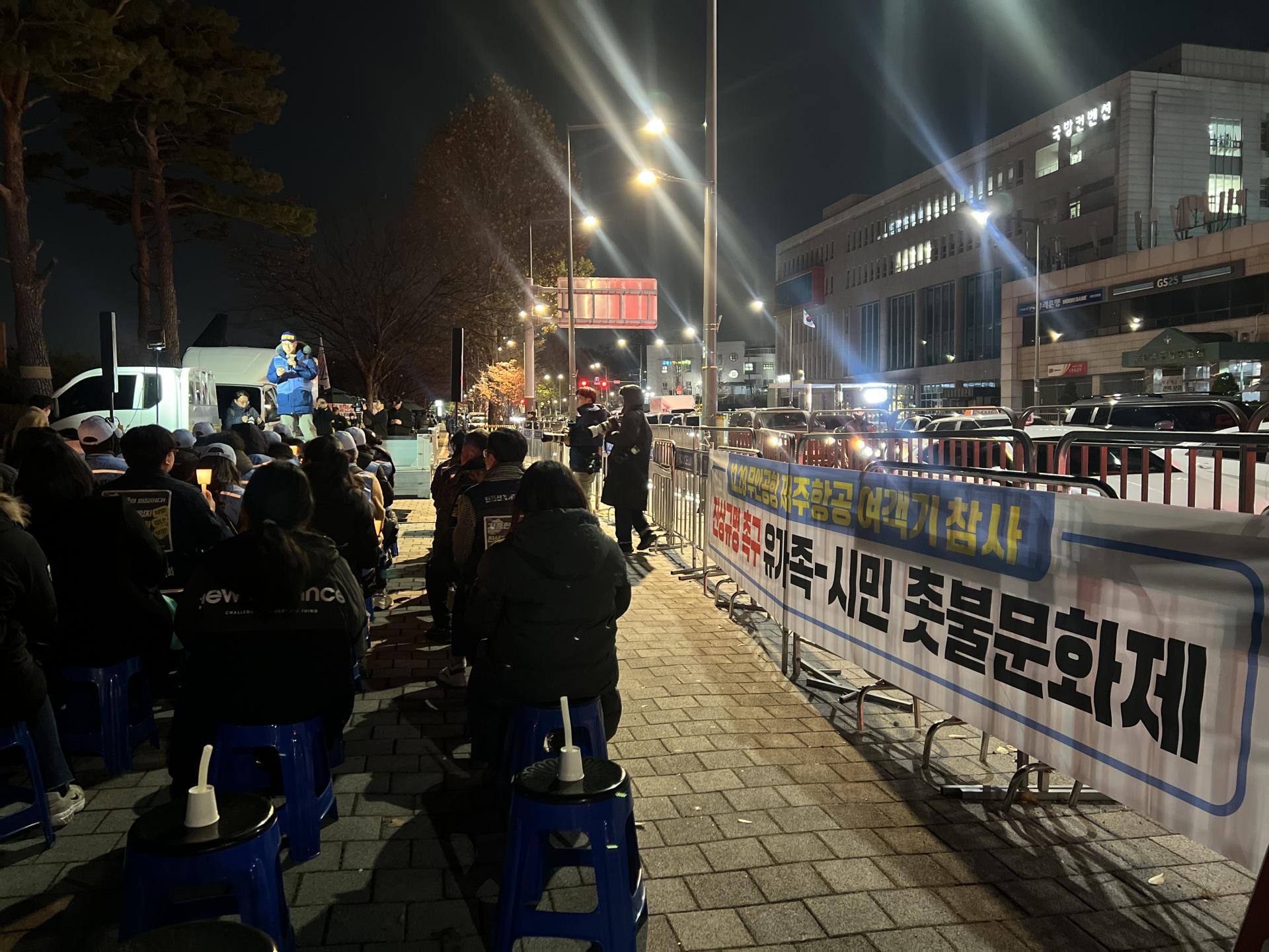 유가족들과 4.16연대를 포함한 연대단체들은 저녁까지 자리를 지키며 1인시위와 12.29 참사 진실규명 시민촛불문화제를 이어갔고, 농성장을 만들어 철야 노숙을 진행했습니다.