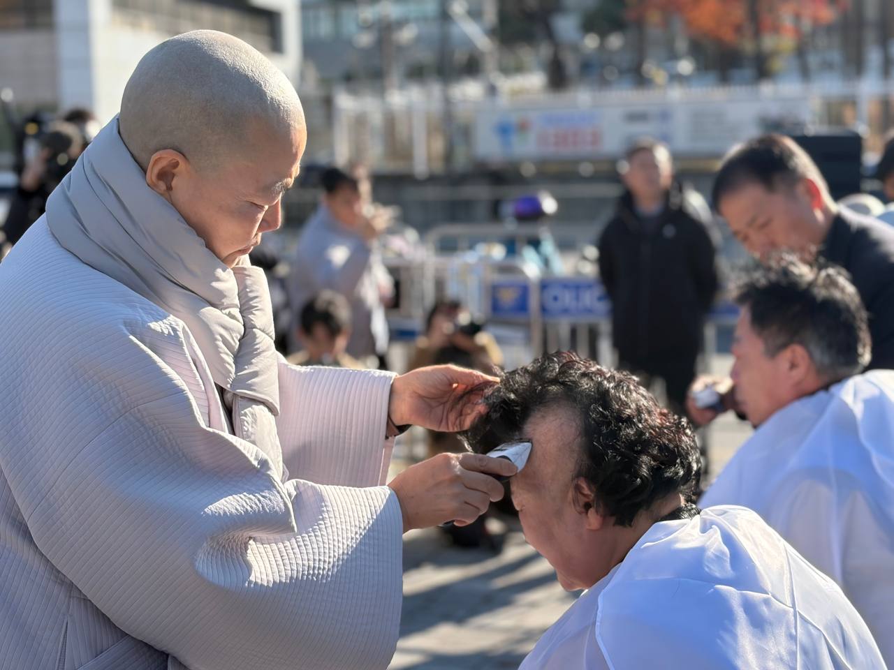 기자회견 직후, 12.29 무안공항 제주항공 여객기 참사 유가족 5분께서는 항철위의 독단적인 행태를 고발하며 독립적인 진상조사를 강력하게 호소하기 위한 삭발을 진행하셨습니다. 삭발 직후 기자회견 참여자들과 함께 대통령실로 향하여 면담 요청서를 제출하려 했으나, 경찰의 저지로 인하여 소수의 대표단만이 면담요청서를 제출할 수 있었습니다.