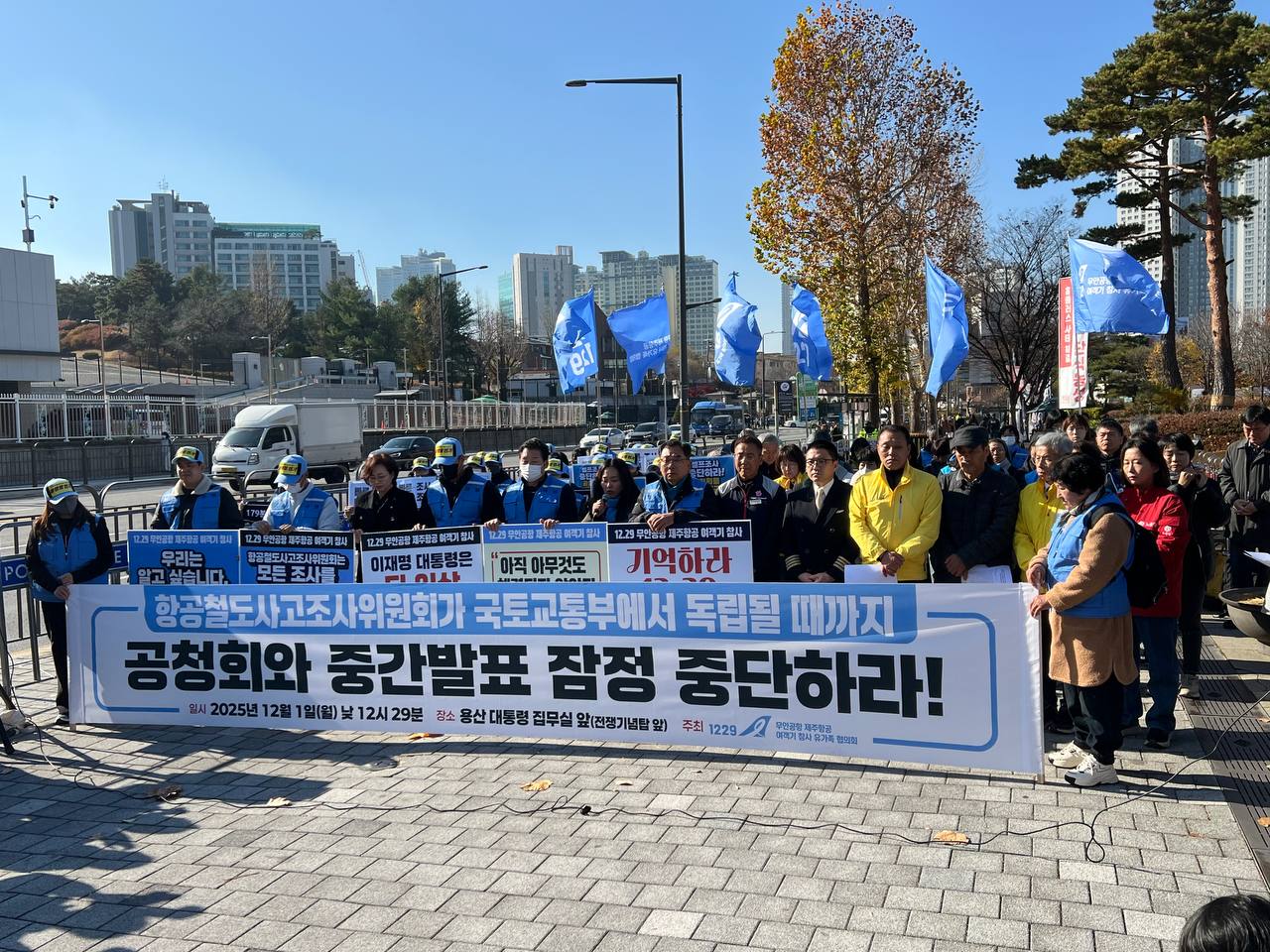 하지만 국토위의 총리실 이관 법안이 논의되기 전, 항철위는 불투명하고 독단적인 중간보고와 졸속 공청회 강행 시도를 하였고, 이에 12.29 무안공항 제주항공 여객기 참사 유가족들과 연대하는 시민사회, 노동, 종교 단체들은 공청회 연기를 요구하며 참사 진상규명과 피해자 참여 보장, 대통령 면담을 공식으로 요청하는 기자회견과 농성을 진행했습니다.