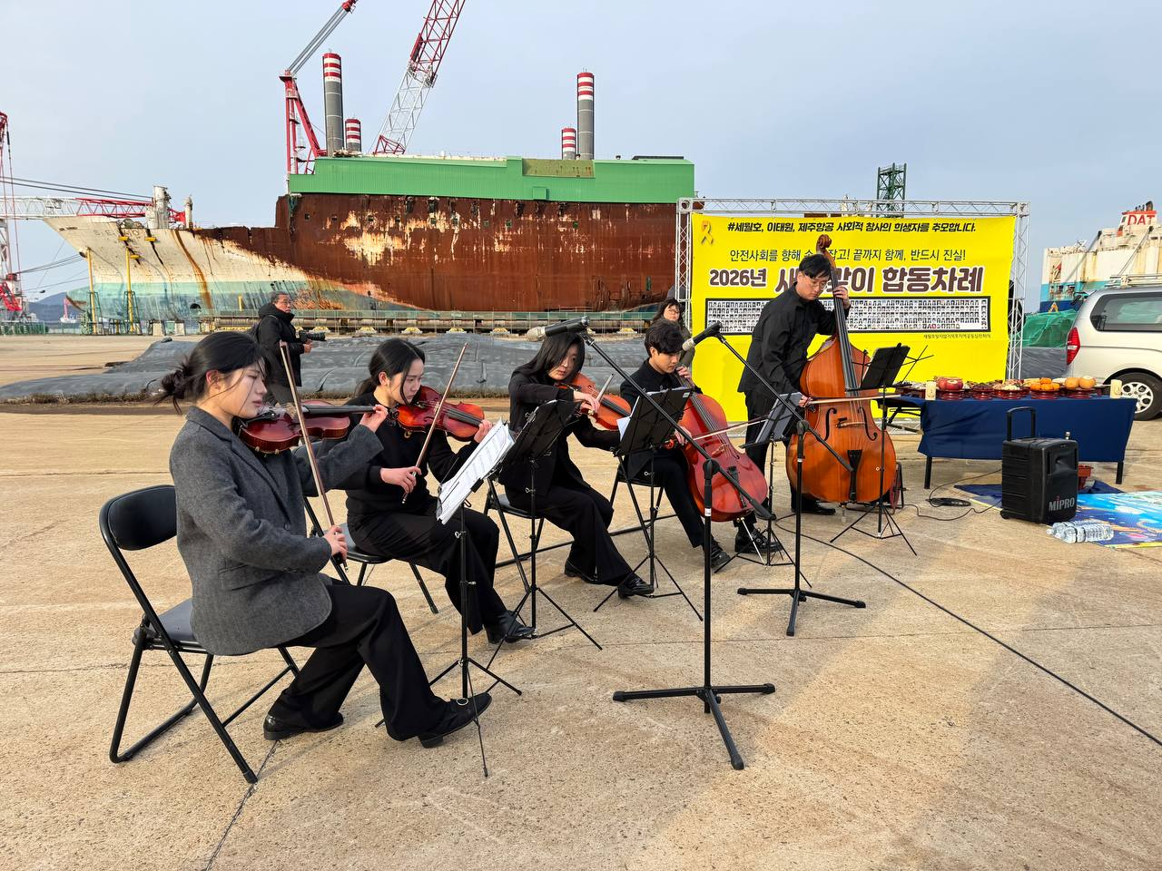 이어진 오케스트라 공연에서는 〈잊지 않을게〉가 연주되었습니다. 손발이 얼어붙는 찬바람 속에서도 말보다 긴 울림으로, 우리는 ‘잊지 않겠다’는 약속이 얼마나 무거운 것인지 다시 느꼈습니다.