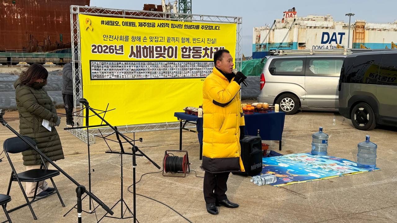 이날 열린 〈안전사회를 향해 손 맞잡고! 끝까지 함께, 반드시 진실! 2026년 새해맞이 합동차례〉는 가억추모의 자리임과 동시에, 반복되는 재난참사 앞에서 다시 한 번 국가의 책임을 분명히 묻겠다는 다짐의 자리였습니다.