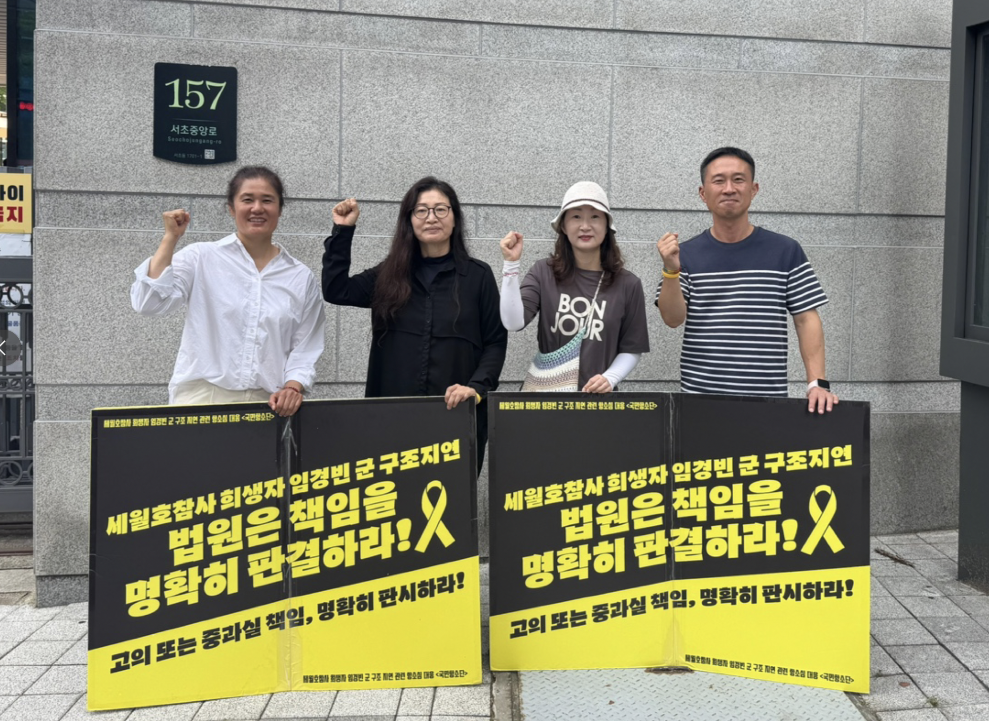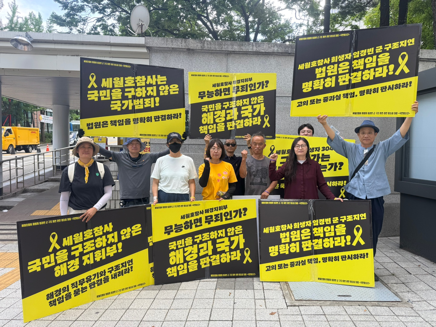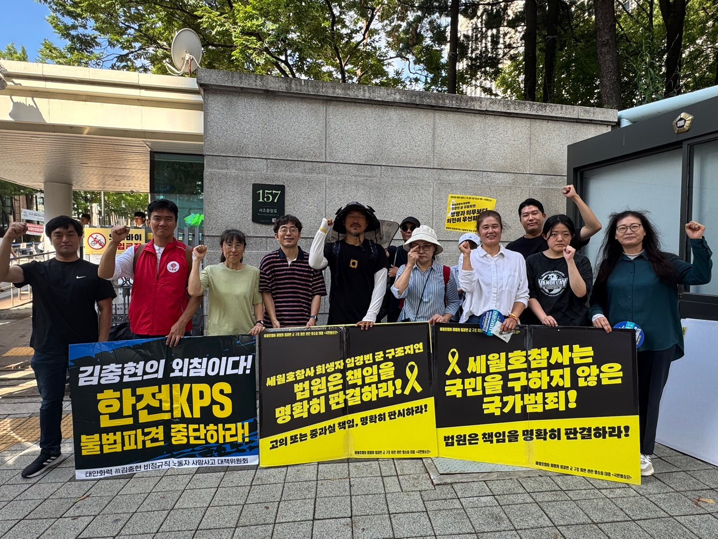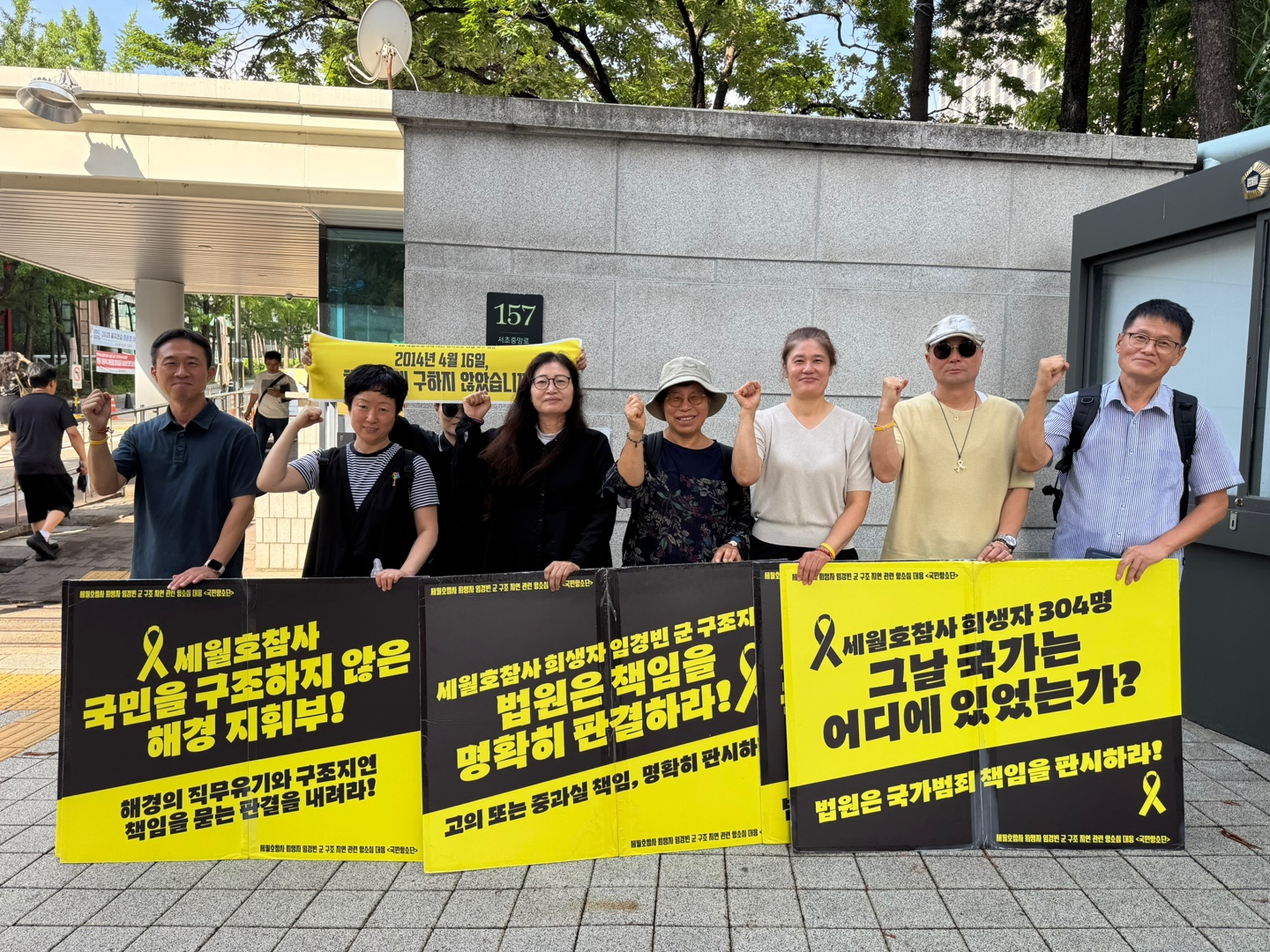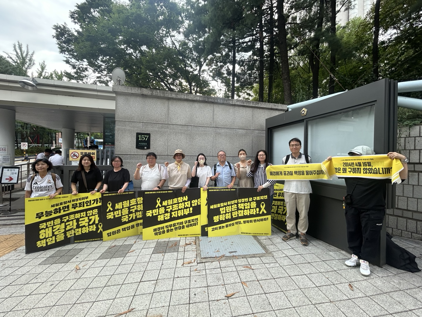 법정 휴가기간을 끝낸 뒤 법원이 문을 열자, 어김없이 피켓팅도 재개되었습니다. 오전엔 손피켓을 들고 법원 앞을 지켰습니다. 오후엔 해는 없었지만 후덥지근한 날씨가 이어졌습니다. 혜정님께서 감사하게도 소금빵과 음료로 간식을 나눠주셨습니다! 많은 분들이 함께 해주셔서 모자란 피켓만큼 다음날 법원 앞 집중피켓팅 - 진실의 노란띠잇기에서 사용할 노란 현수막을 시범삼아 들어주셨습니다!