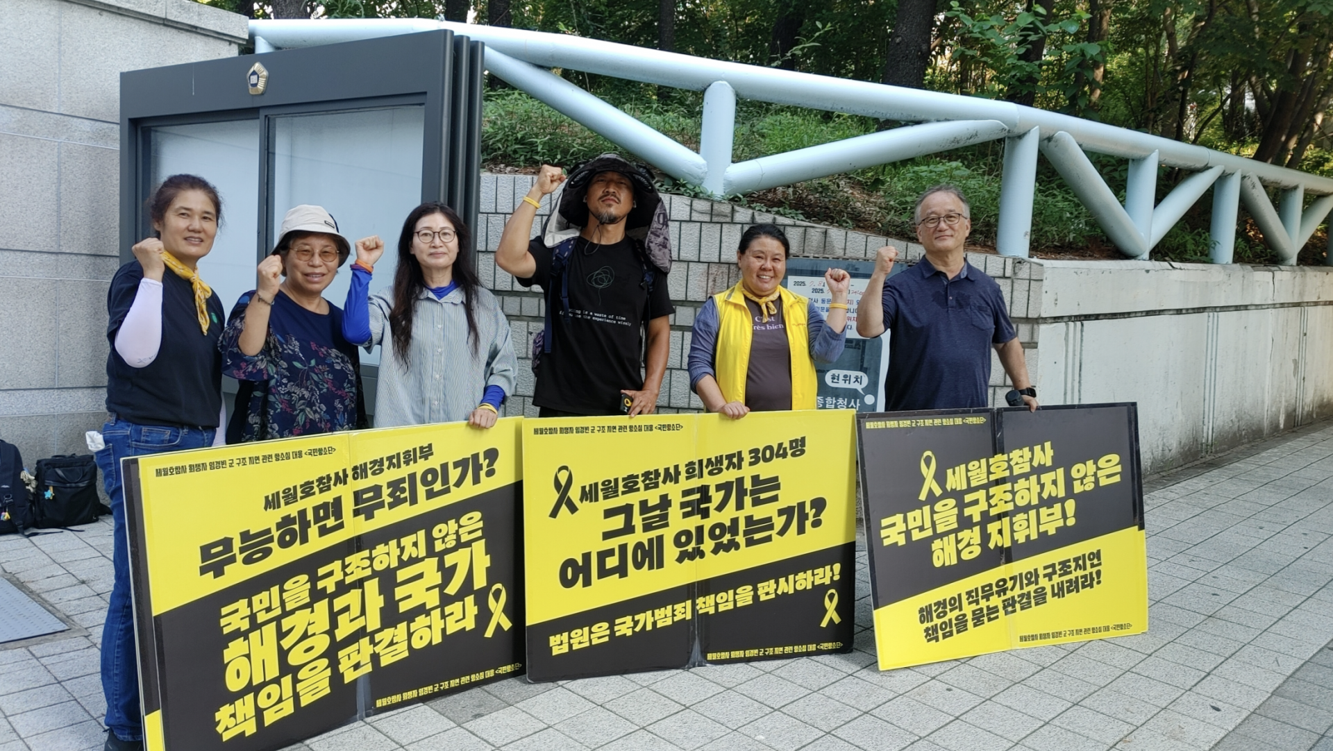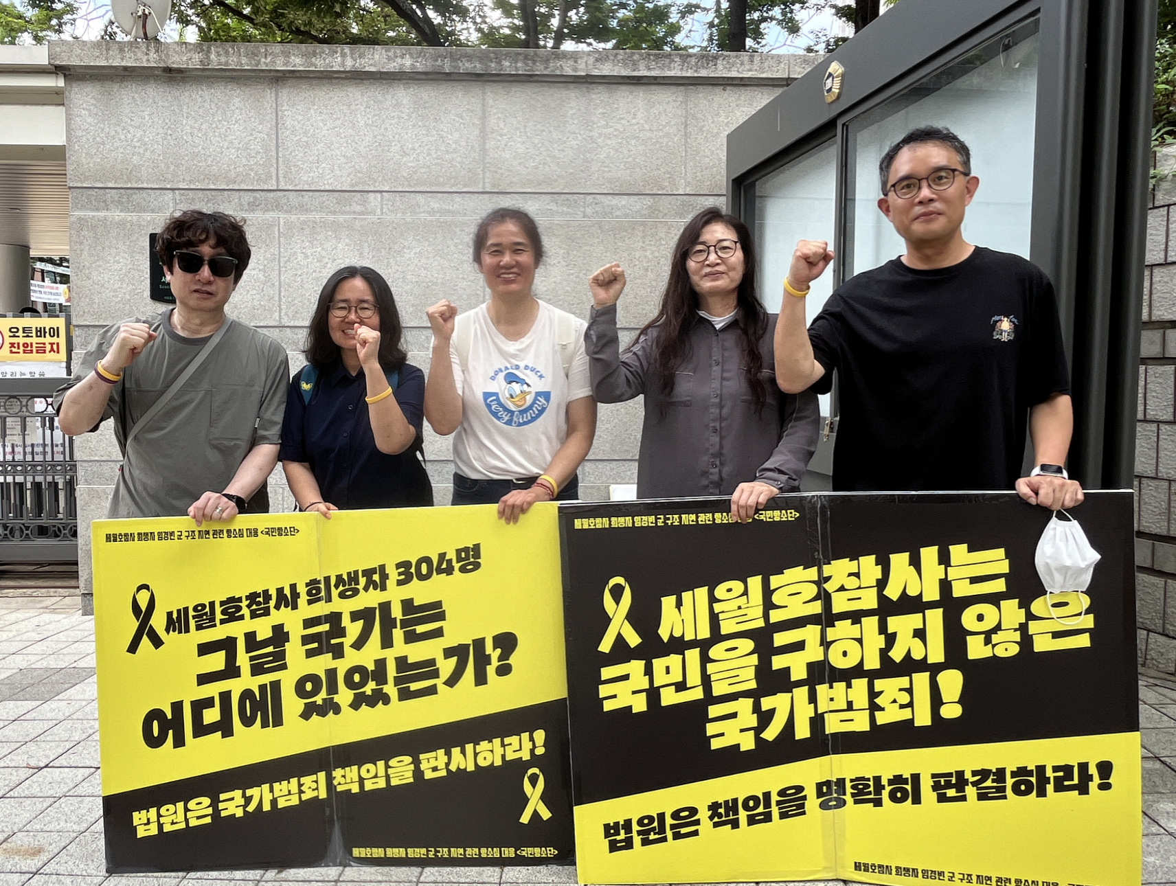 법원 앞에서 피켓을 들었습니다.