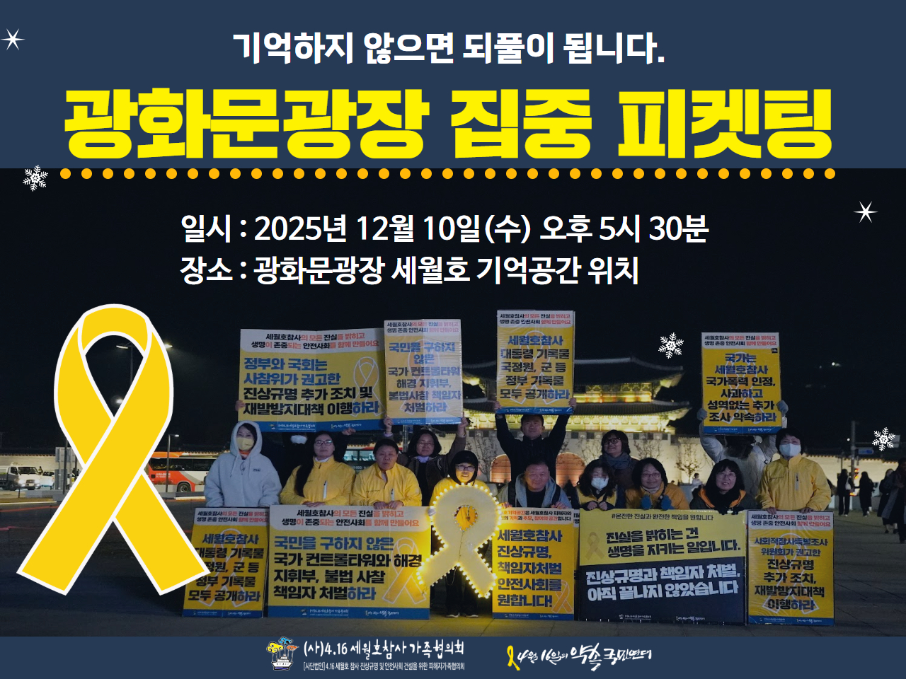 ※ 서울시의회 앞 세월호 기억공간에서 1인 피켓을 수령해서 함께 광화문광장으로 이동하여 피켓팅을 진행합니다.