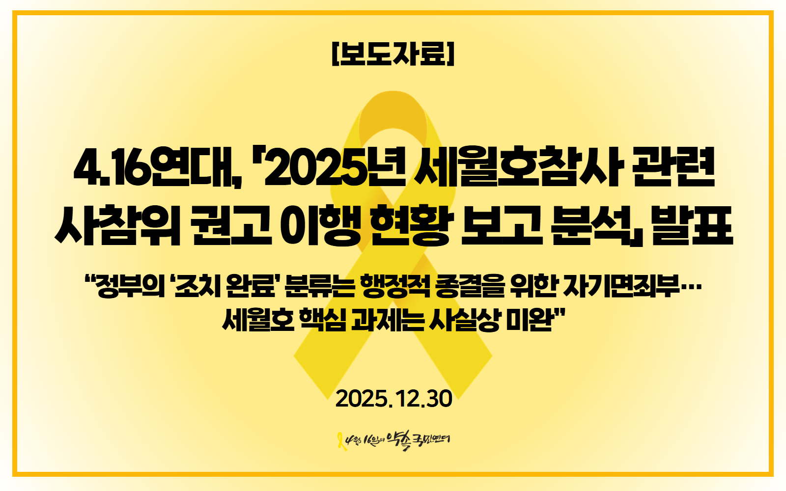 4.16연대, 「2025년 세월호참사 관련 사참위 권고 이행 현황 보고 분석」 발표